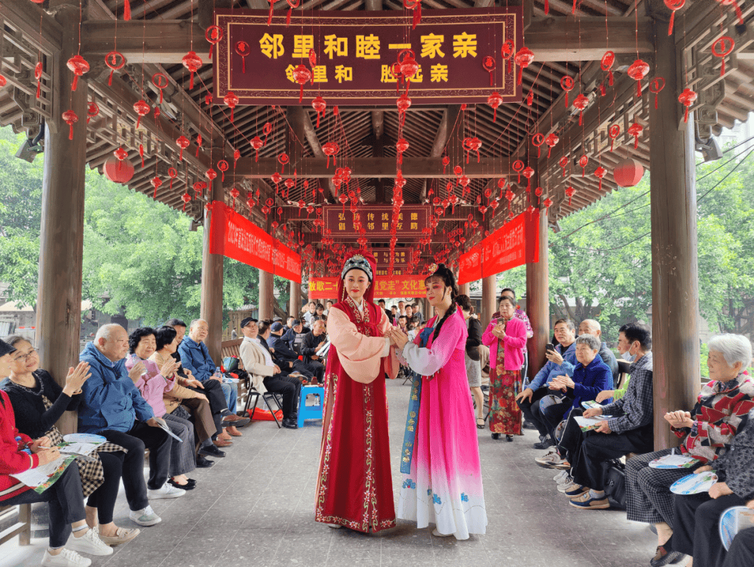 自2007年起,社区连续举办十七届邻里文化节,居民自编自演的文艺节目充满浓郁生活气息,成为凝聚邻里情谊的“金字招牌”;每月定期开集的“近邻集市”,汇集免费便民服务、二手义卖、政策宣讲等内容,烟火气中饱含浓浓的人情味;为让居民从文明实践的“旁观者”变为“参与者”,社区组建了合唱团、舞蹈队等9支特色文化队伍,让居民在自娱自乐中增进交流、凝聚共识;节庆时,非遗展演与家风讲座轮番登场,让传统文化活态传承,优良家风代代赓续。